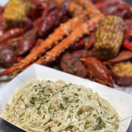 Everything was delicious! I'm a big seafood boil fan and this place and location hit the spot. I love the ambiance of this place- very spacious & you really feel like you're under or at sea. I forgot to take photos of the seafood because I was so excited to eat, but with a family of 4 we got: combo #1 lemon pepper mild (3 lb of your choice w/ potatoes, corn & HOT LINK sausages) crawfish new orleans medium (1lb) *my favorite of the night appetizers: fresh oysters & fried calamari drinks: corona, IPA, long island iced tea